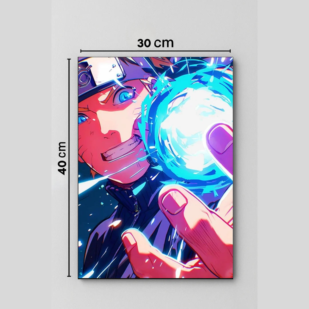 Este dinámico cuadro decorativo captura la voluntad inquebrantable de Naruto Uzumaki en su máxima expresión. La perspectiva en primer plano te sumerge en la acción, mientras que la energía azul vibrante del Rasengan ilumina la escena, transmitiendo una sensación de poder, coraje y esperanza.